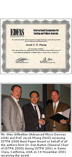 ISTFA, the International Symposium for Testing & Failure Analysis 2000 for "Best Paper Award" & 2001 for "Best in Session" Paper AwardThe ISTFA 2000 Best Paper Award was presented