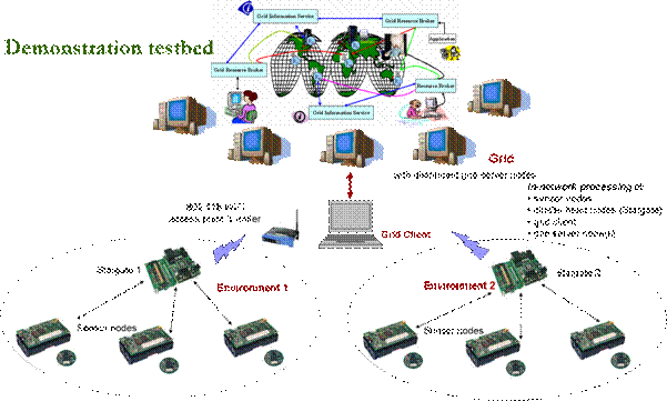 web-services-based interconnected sensor network and grid computing (based on Globus Toolkit 4) architecture capable of doing distributed